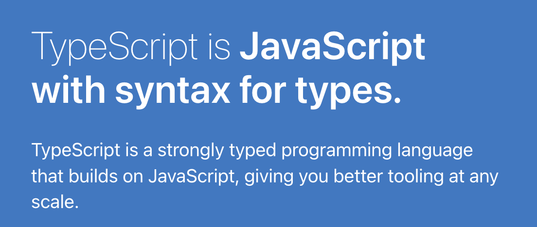 공식 홈페이지에서는 TypeScript is JavaScript with syntax for types 라고 소개하고 있다.
