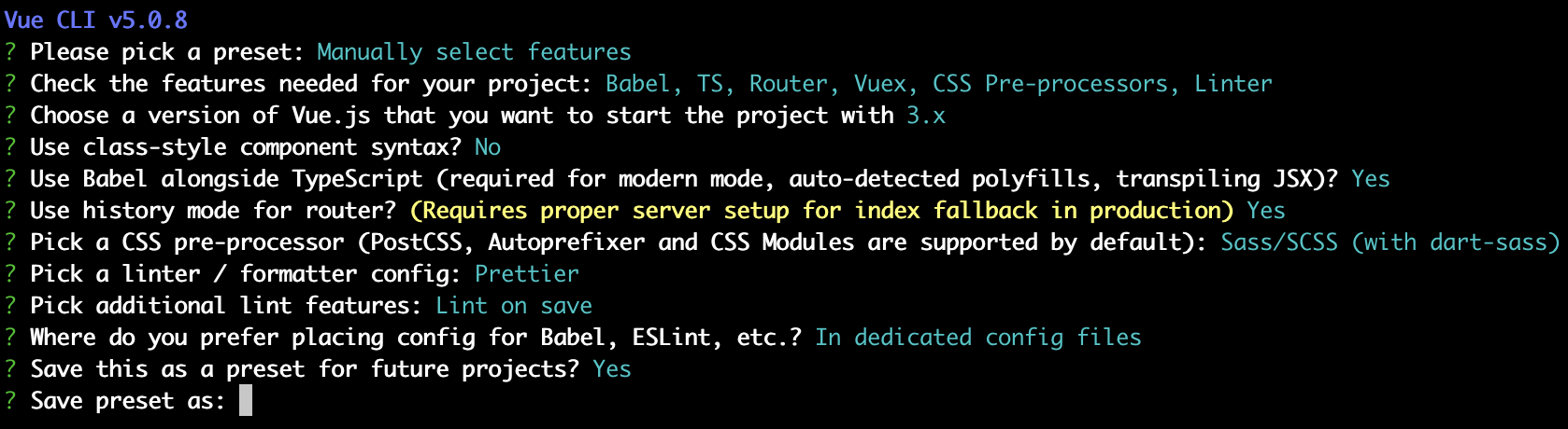 또한, babel, eslint 등의 config 파일은 package.json에서 한번에 관리하기 보다는 각각의 파일로 관리하기 위해 dedicated config files를 선택했습니다. 각 설정의 상세 내용은 vue-cli 공식 홈페이지를 참고해주시기 바랍니다.