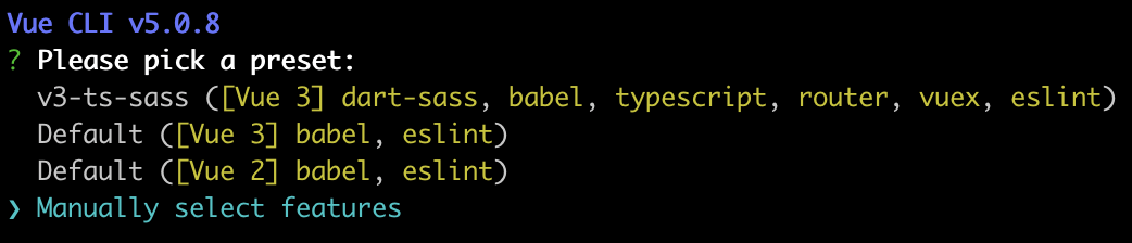 vue-cli를 이용하여 아래처럼 vue3 프로젝트를 생성 했습니다. (vue-cli 공식 사이트)