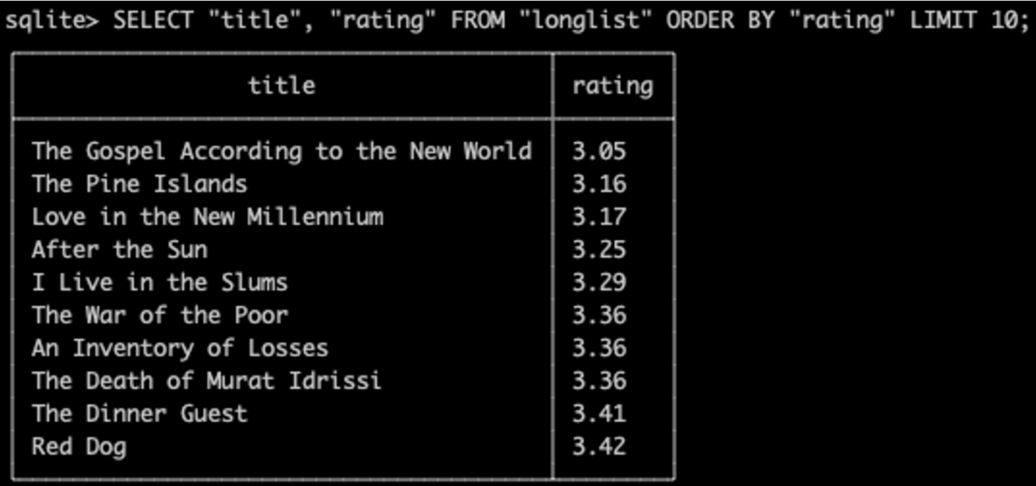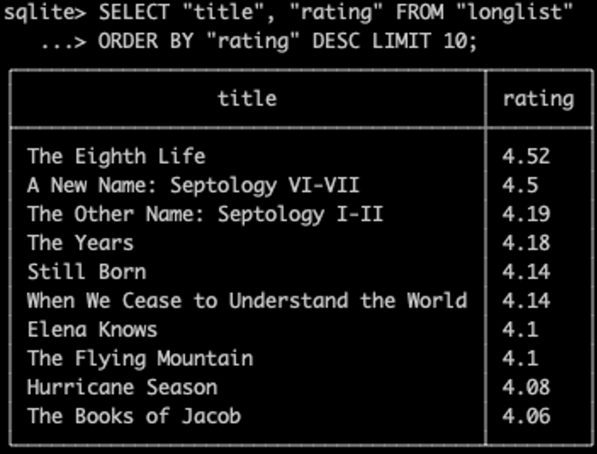 그럼 정렬방법을 내림차순(DESC)으로 명시하여 탑 10 책 제목을 조회 해 보자.