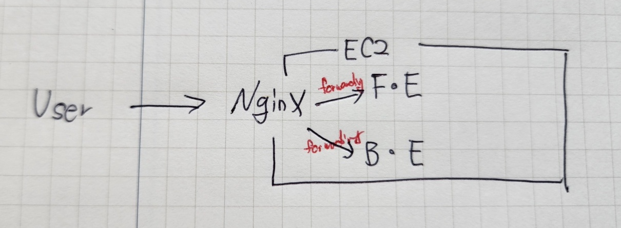 개인 프로젝트를 AWS에 배포하는 단계에서 EC2앞에 nginx를 두고, F.E, B.E 모두 포트 포워딩을 해야 하는 상황이 생겼다.