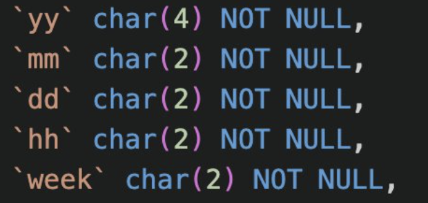 기존 집계 테이블 구조엔 yy, mm, dd, hh, week와 같이 집계 시점을 저장하는 필드들이 있었다.