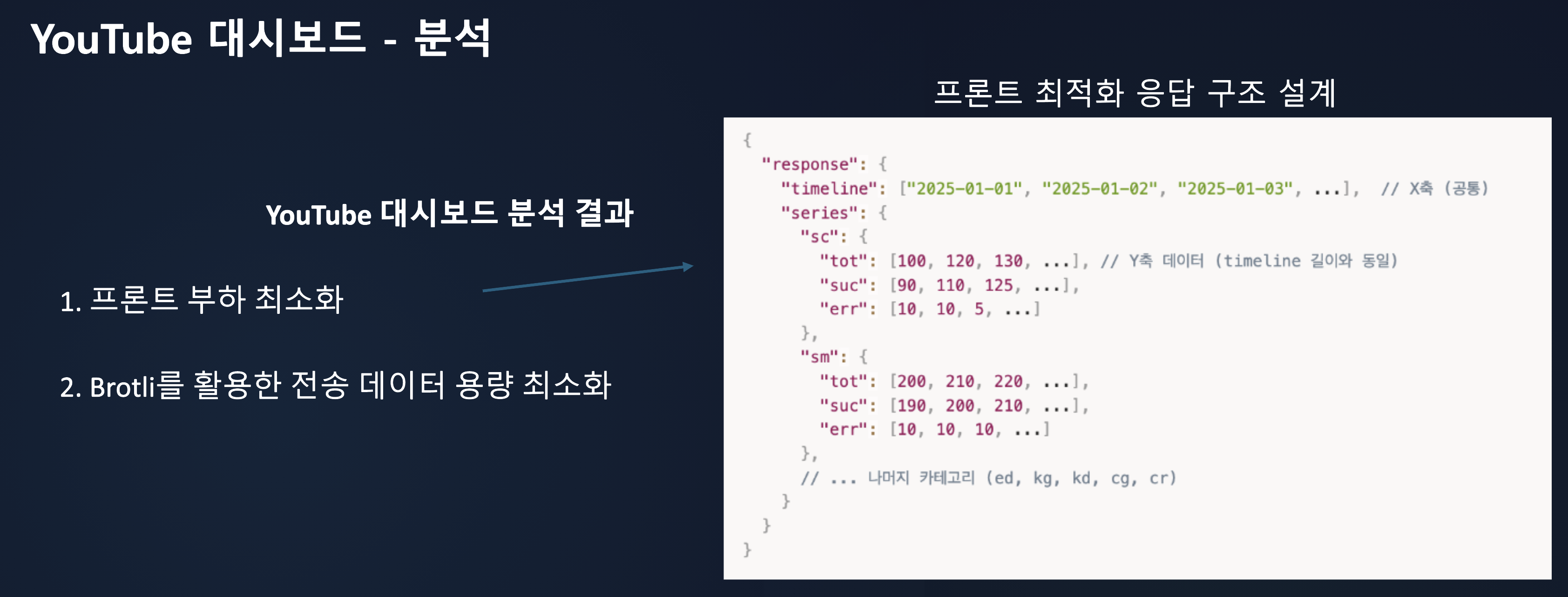 우선, 프론트에서 바로 차트에 데이터를 넣어 렌더링 할수 있도록 아래처럼 구조를 설계하였다. - Brotli 와 같은 웹 압축기술 사용