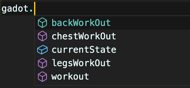 이에 반해, interface없이 생성한 gadot은 모든 메소드및 속성에 접근이 가능한 것을 볼 수 있다.