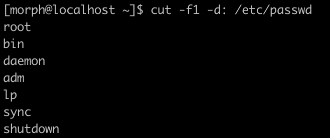 grep /bin/bash /etc/passwd | cut -f1 -d: