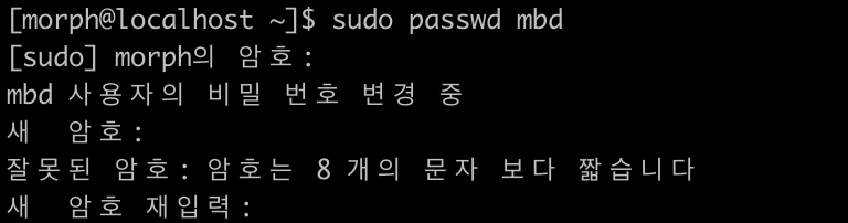 비밀번호 설정의 경우, 본인 계정이 아니라면 root 계정만이 다른 계정의 비밀번호 설정을 할 수 있다.