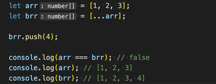 아래처럼, 복사하고자 하는 배열을 spread 연산자를 통해 풀어서 생성하면 깊은 복사를 할 수 있다.