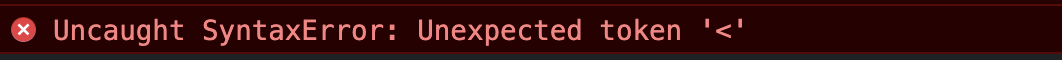 이유는 간단하다. 우리가 ReactDom메소드를 이용해 넣으려고 했던 '<'h1>...</h1>' 은 JS 문법이 아니라, JSX이기 때문이다.