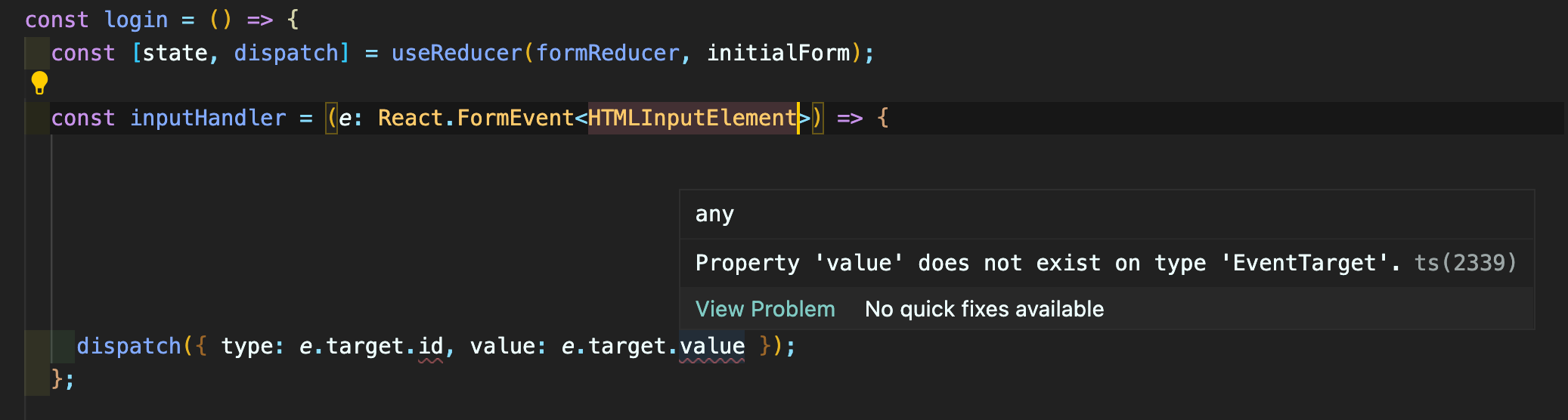 이때 EventTarget이라는 타입에 value라는 속성이 없기 때문이다.
