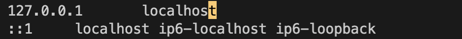 vi /etc/hosts 를 통해 아래와 같은 정보를 볼 수 있었습니다.