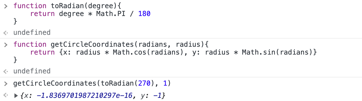 function getCircleCoordinates(radians, radius){