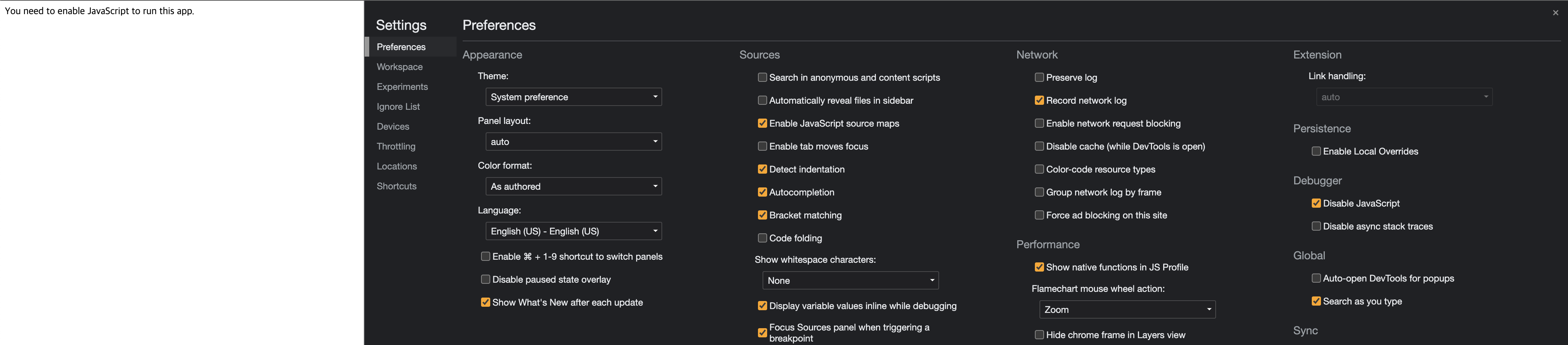 참고로, Chrome에서 JS를 disable하는 것은